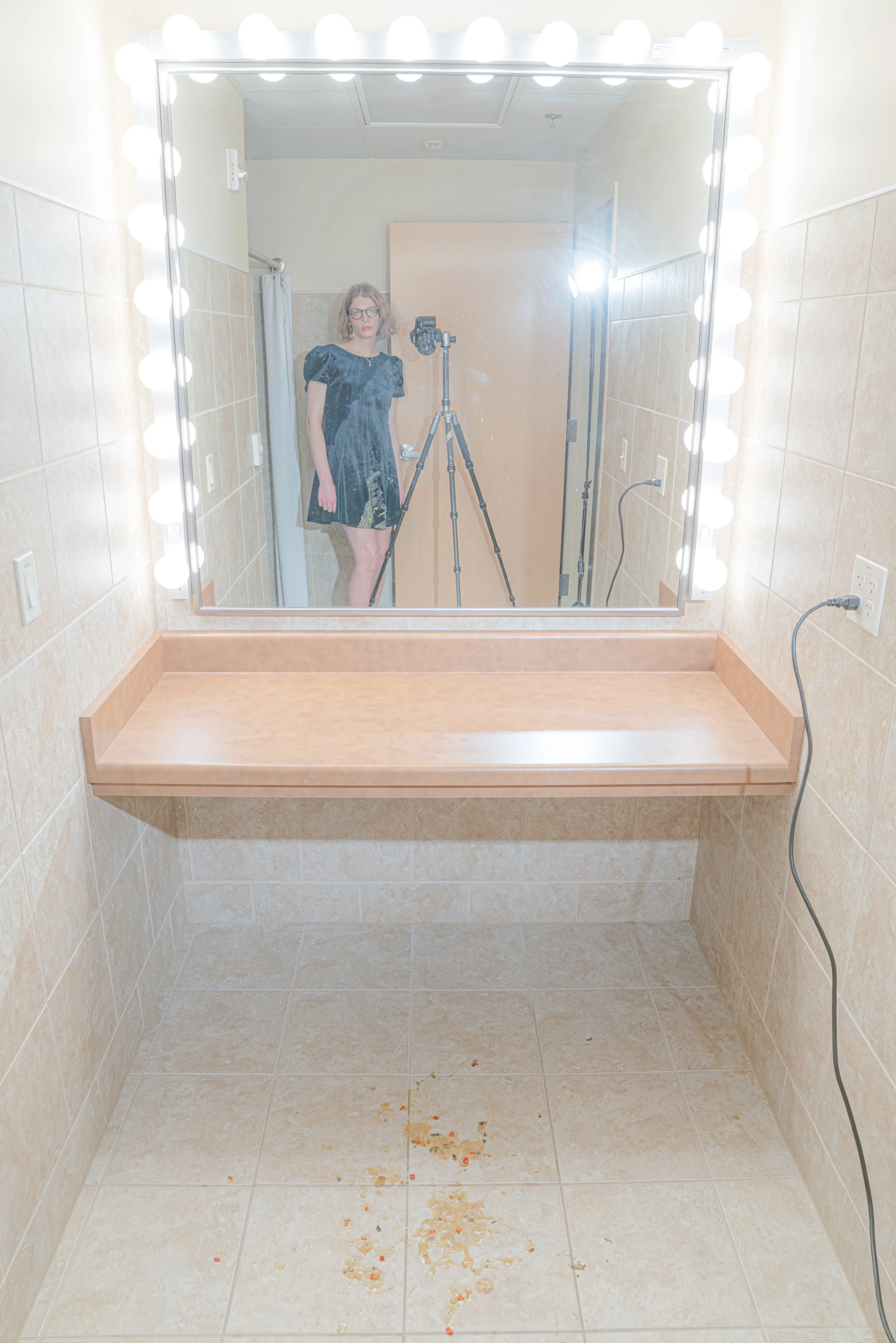 This lighthearted piece consists of me making myself vomit in a formal gown. In popular culture, transgender women are seen as gross. There is a seemingly self replicating scene in TV and movies, as seen in Ace Ventura and Family Guy, where cis characters vomit when they realize a beautiful woman is transgender. Well, with this piece, I am taking back control and making MYSELF vomit. Take that, cis establishment! Of course, I made this performance in front of a cultural backdrop that insists women, cis or trans, be simultaneously in control of and subject to our bodies. It owes a lot to Janine Antoni’s Lick and Lather.